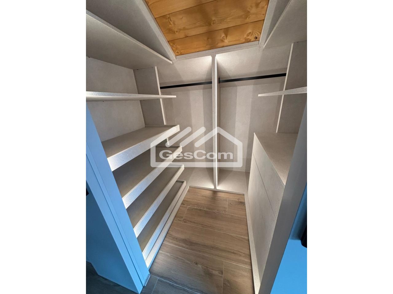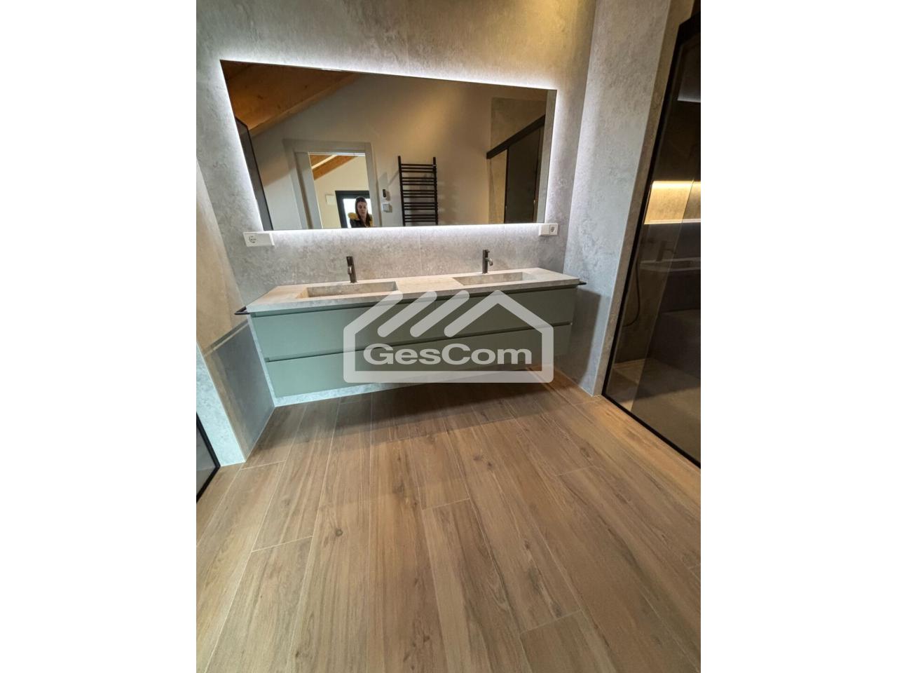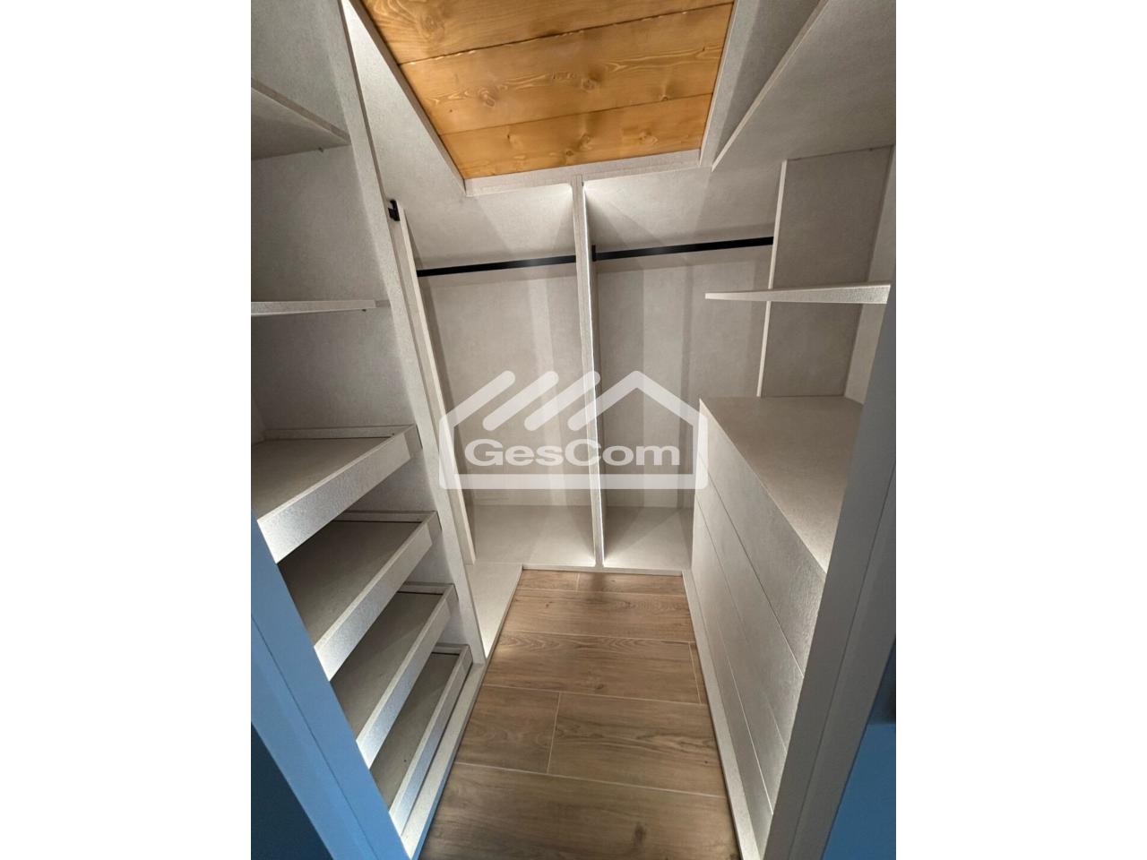 En la planta superior se sitúa el dormitorio principal, con baño privado que incluye bañera y ducha, vestidor y balcón con agradables vistas. La casa está equipada con calefacción en todas las estancias y destaca por sus acabados de calidad, como las vigas vistas en los techos y los revestimientos decorativos de los baños, que aportan calidez y elegancia.
