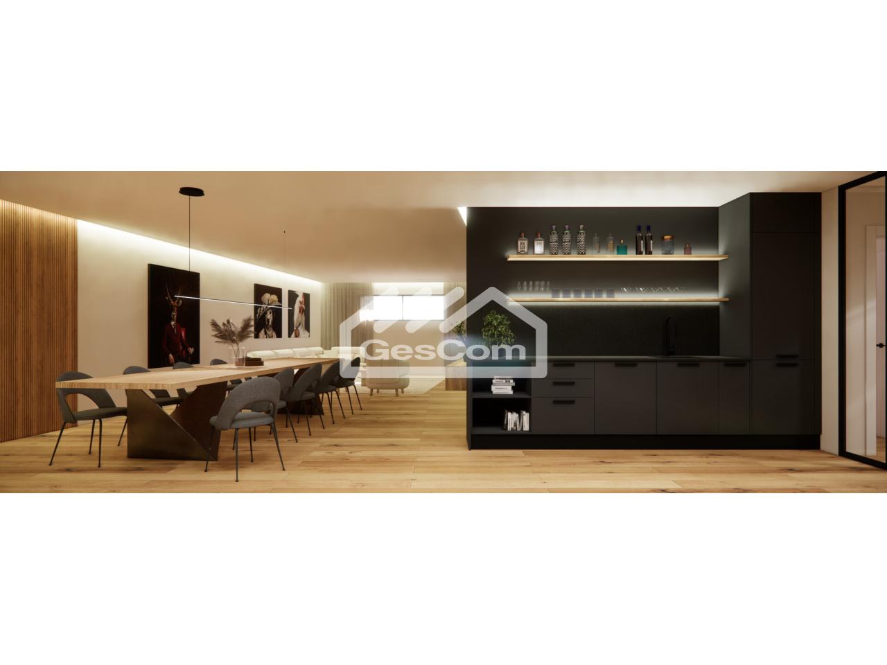El corazón de la vivienda: una amplia zona de día con salón-comedor y cocina, abierta a una gran terraza y jardín, donde la luz y el paisaje se convierten en protagonistas.